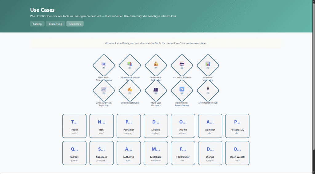Grundidee von myFlow•Kit ist es, digitale Lösungen nicht von bestehenden Tools oder Technologien aus zu denken, sondern vom Anwendungsfall. Am Anfang steht immer die Frage: Was soll geprüft, entschieden oder unterstützt werden? Erst daraus leitet sich ab, welche Komponenten tatsächlich benötigt werden.